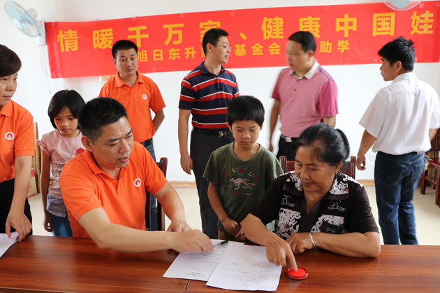 ▲旭日東升慈善基金會(huì)與受助者監(jiān)護(hù)人簽訂捐贈(zèng)協(xié)議